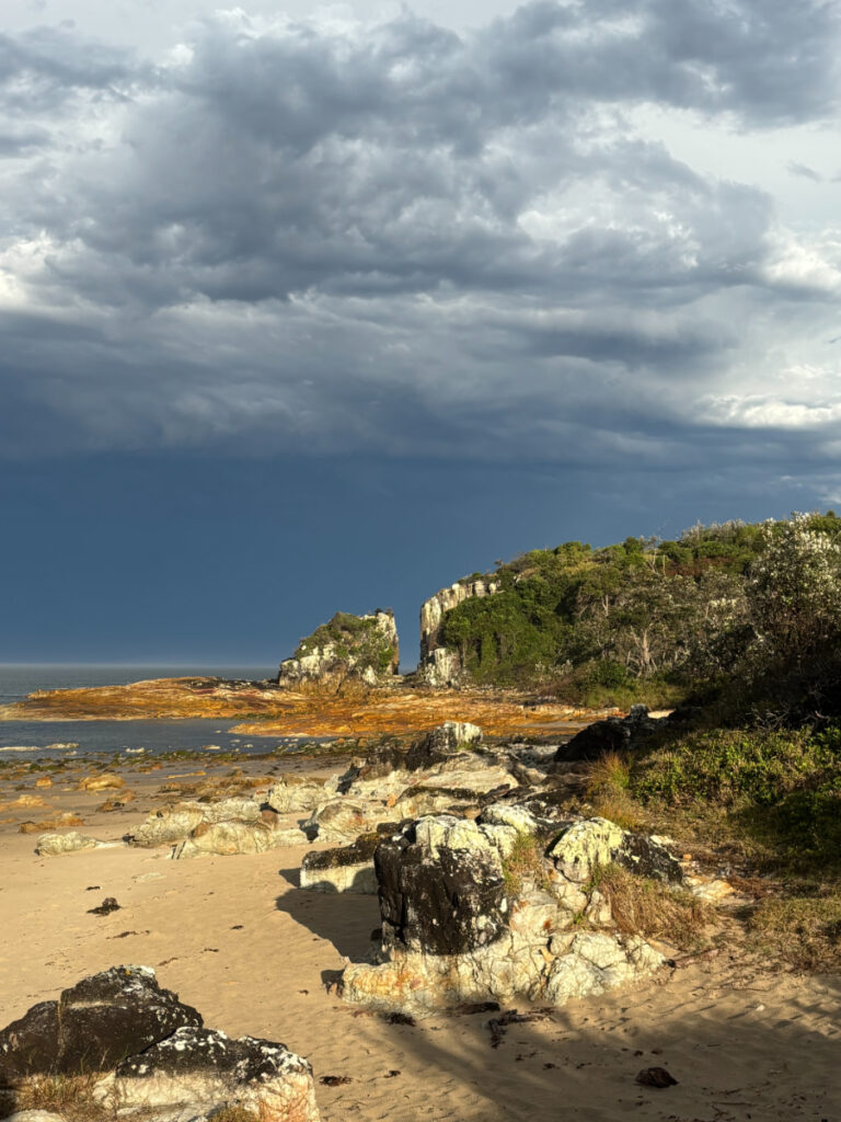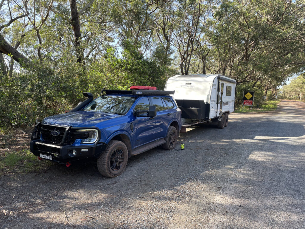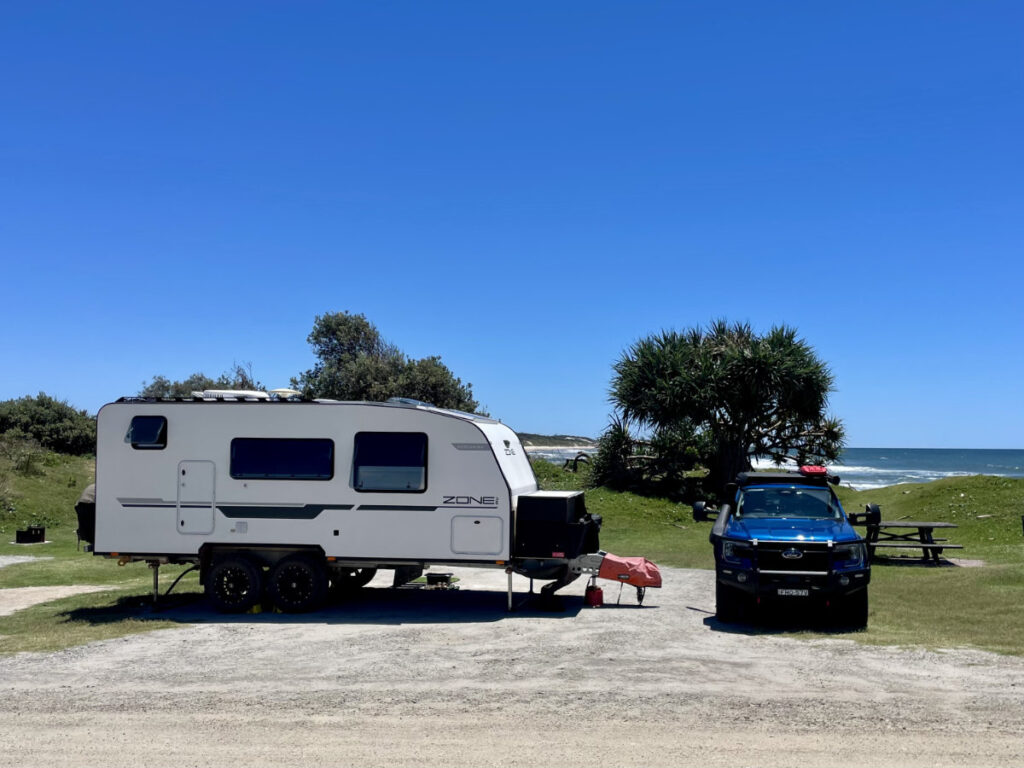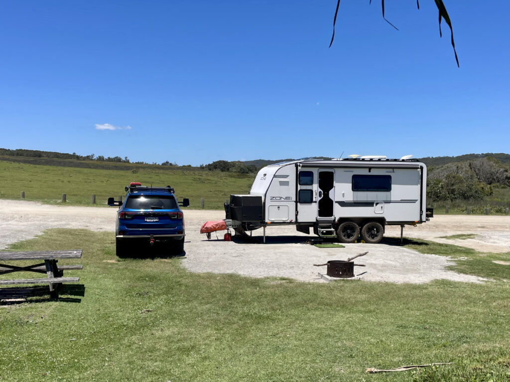 Diamond Head Campground in Crowdy Bay National Park is right on the beach. There is no potable water but cold showers and toilets are available (making this one of the better National Parks). We enjoyed the stunning scenery, swimming and walks. Beach 4WD was embraced by one of us more than the other!