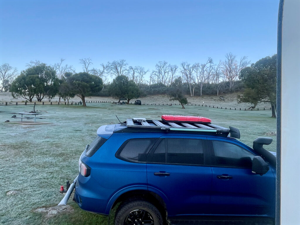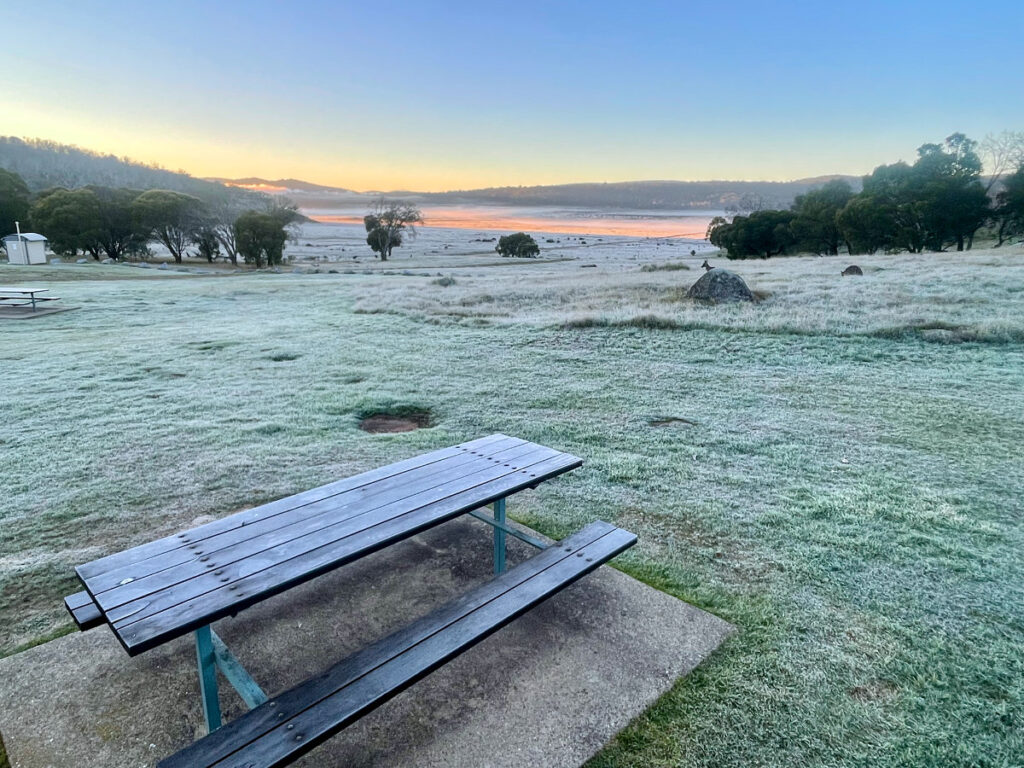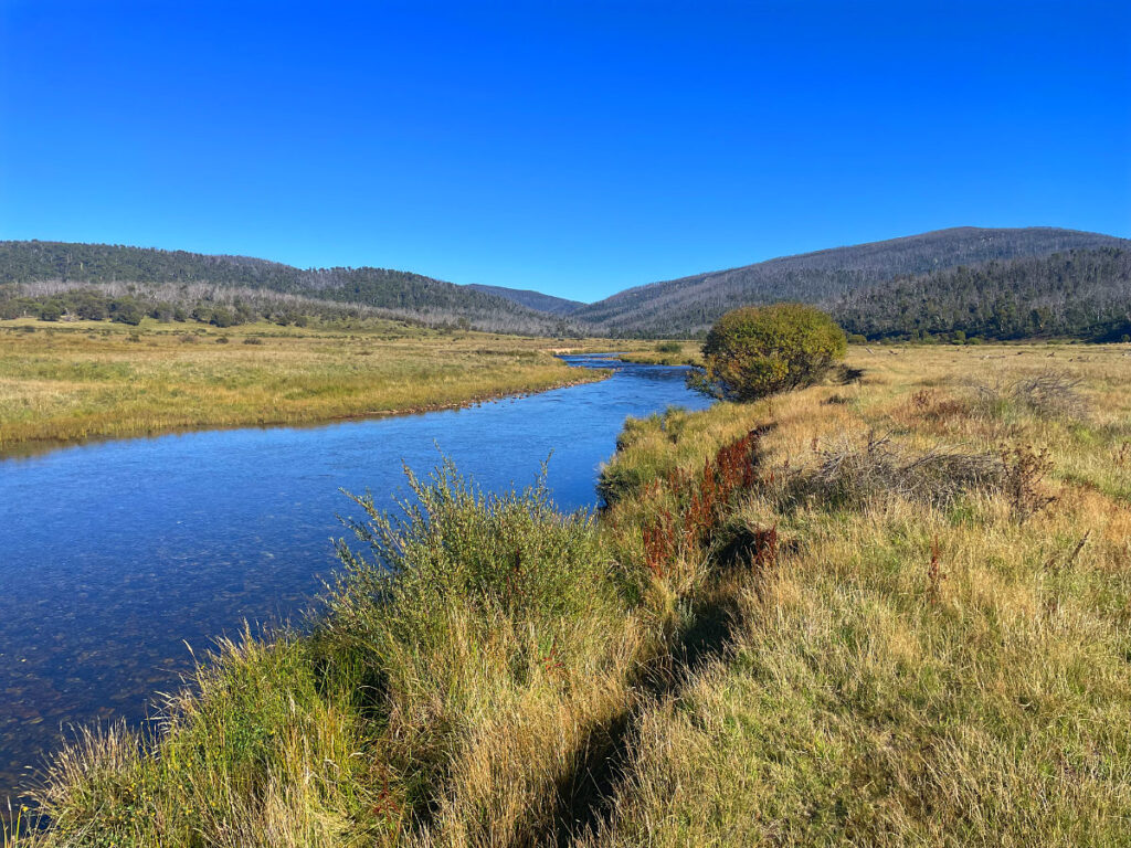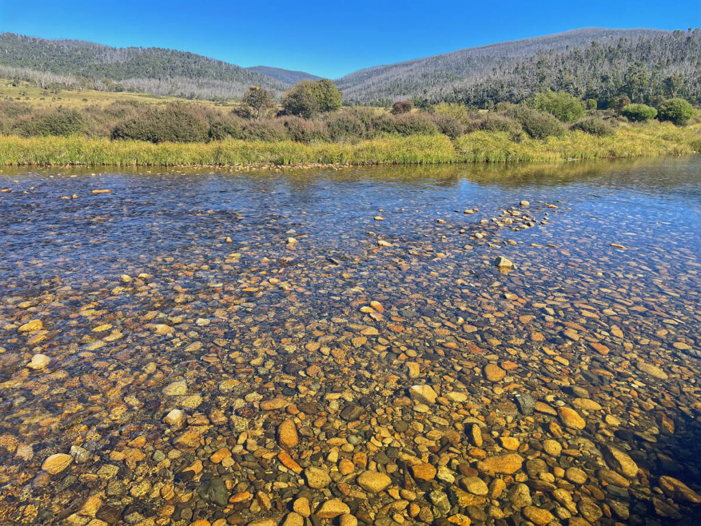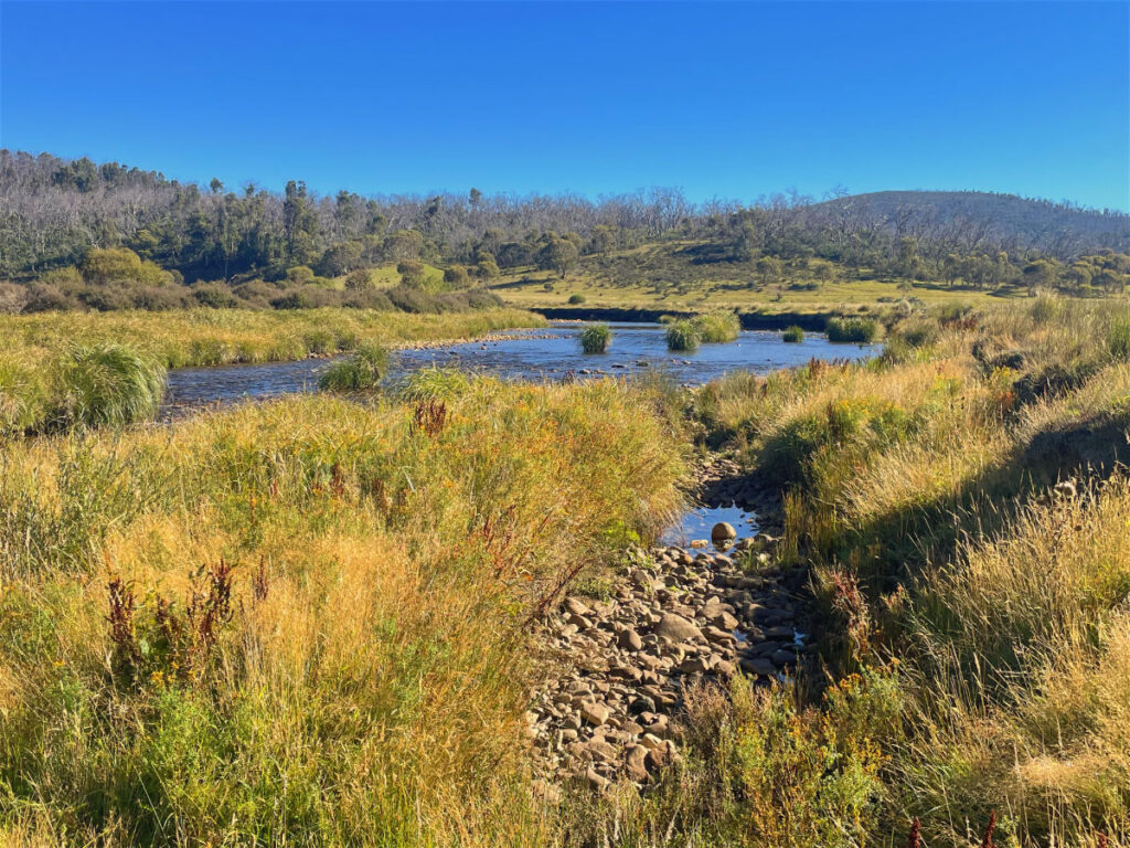 This is a lesser known camping area in Koscciuszko National Park, not far from Kiandra. We could walk 500 meters to the bank of the Eucumbene River, north west of the Eucumbene Dam. There were walking trails, many kangaroos, bird life and glorious bush and mountain views.