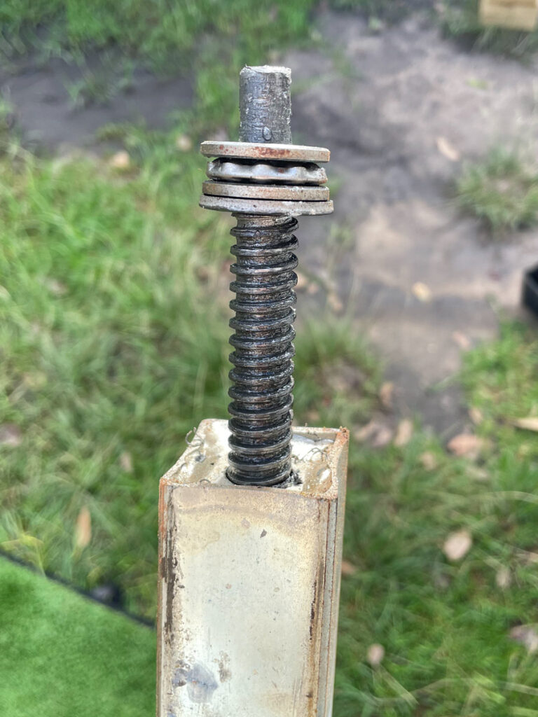 Damaged stabiliser leg following harsh dirt road travel in NT & WA last year. Temporary fix with the assistance of our camping neighbour.