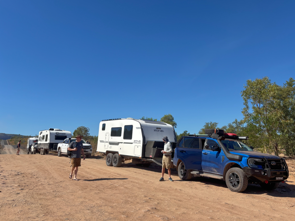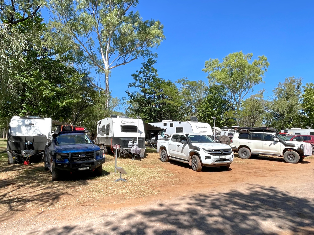 Overnight stop… illegally parked caravans and motor homes? We were lined up behind a motor home with another car & van behind. Multiple rows of other travellers in the same pattern. Nowhere to escape in an emergency. Different rules in NT 😳