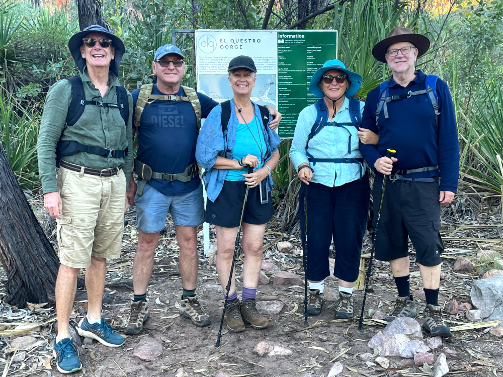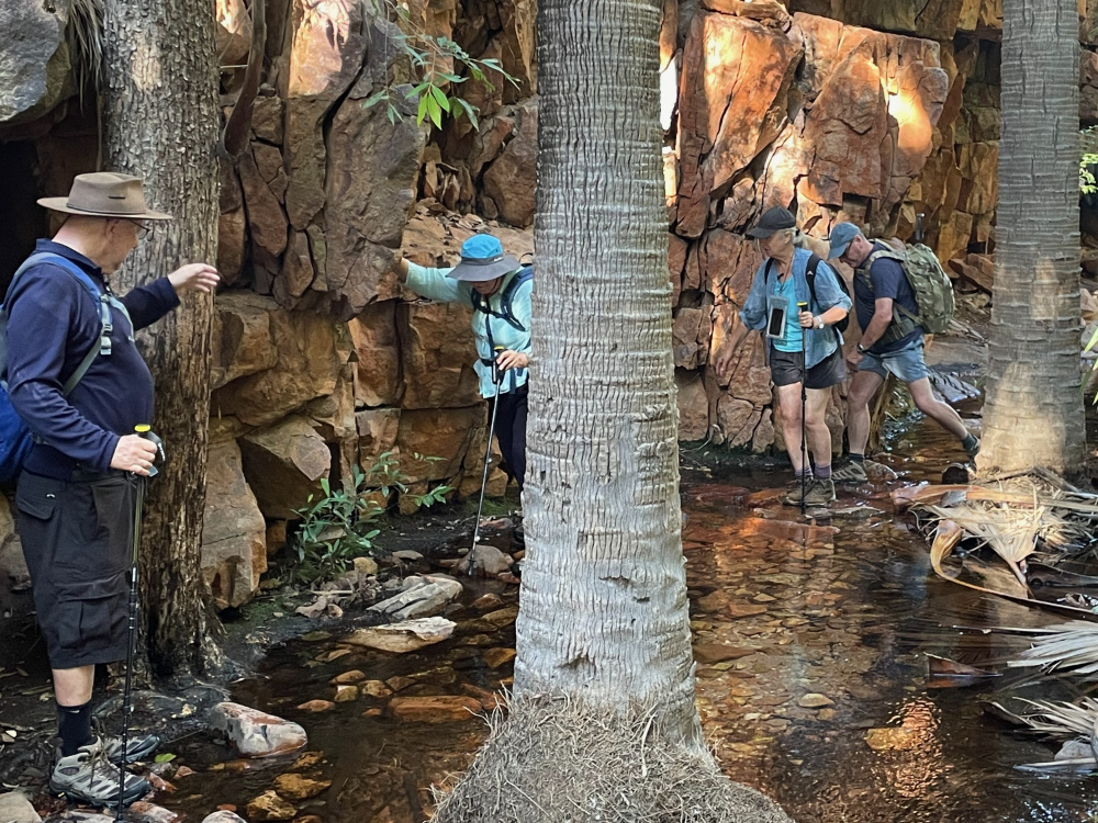 The six adventurers were reduced to five, as I (Jenny) needed a rest day. Similar to the day before, the hike was challenging. John and Lyn met the challenge and reached El Questro Gorge and waterfall. The others reached the half way point at the boulder – a natural barrier, deterring many from attempting to go further.